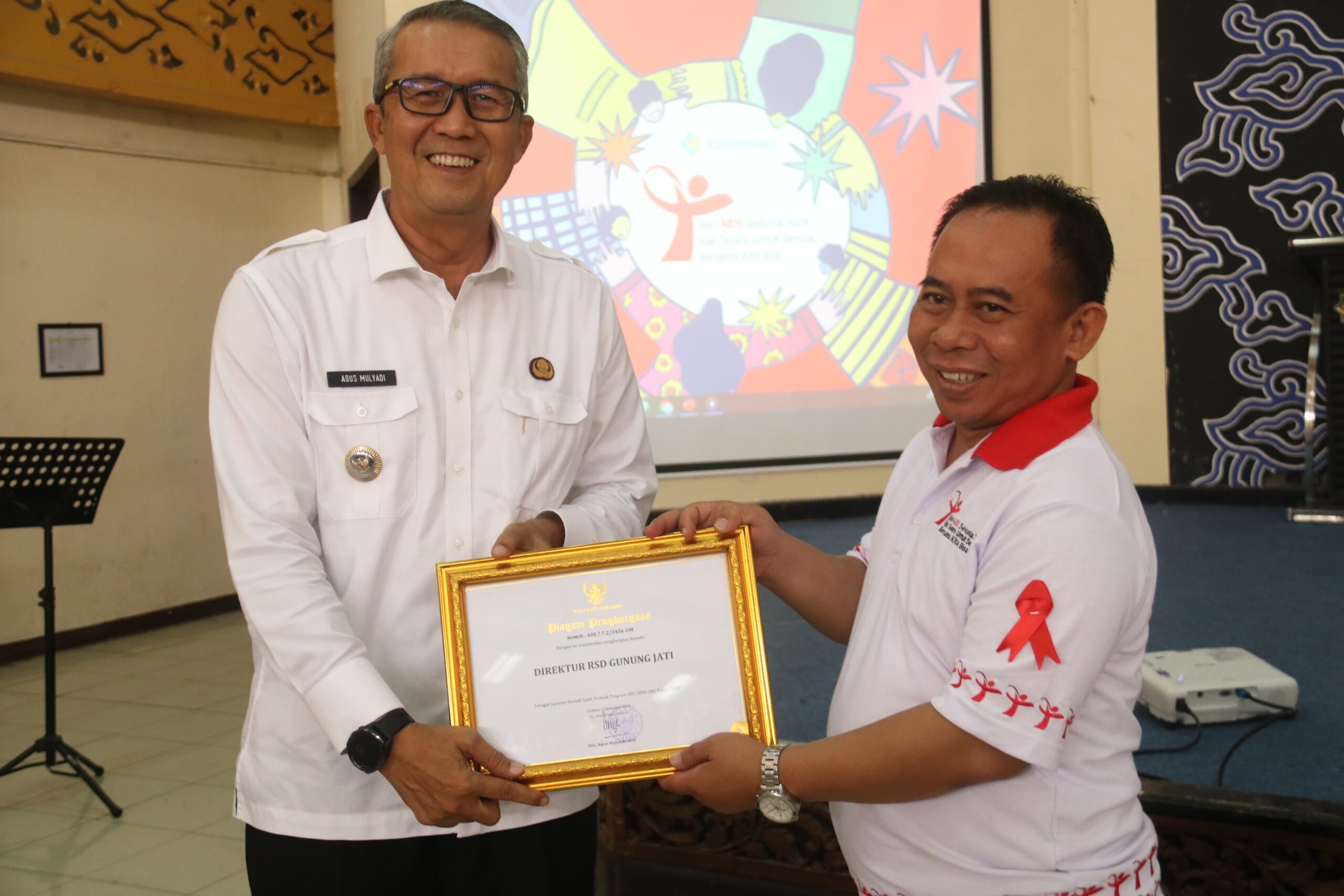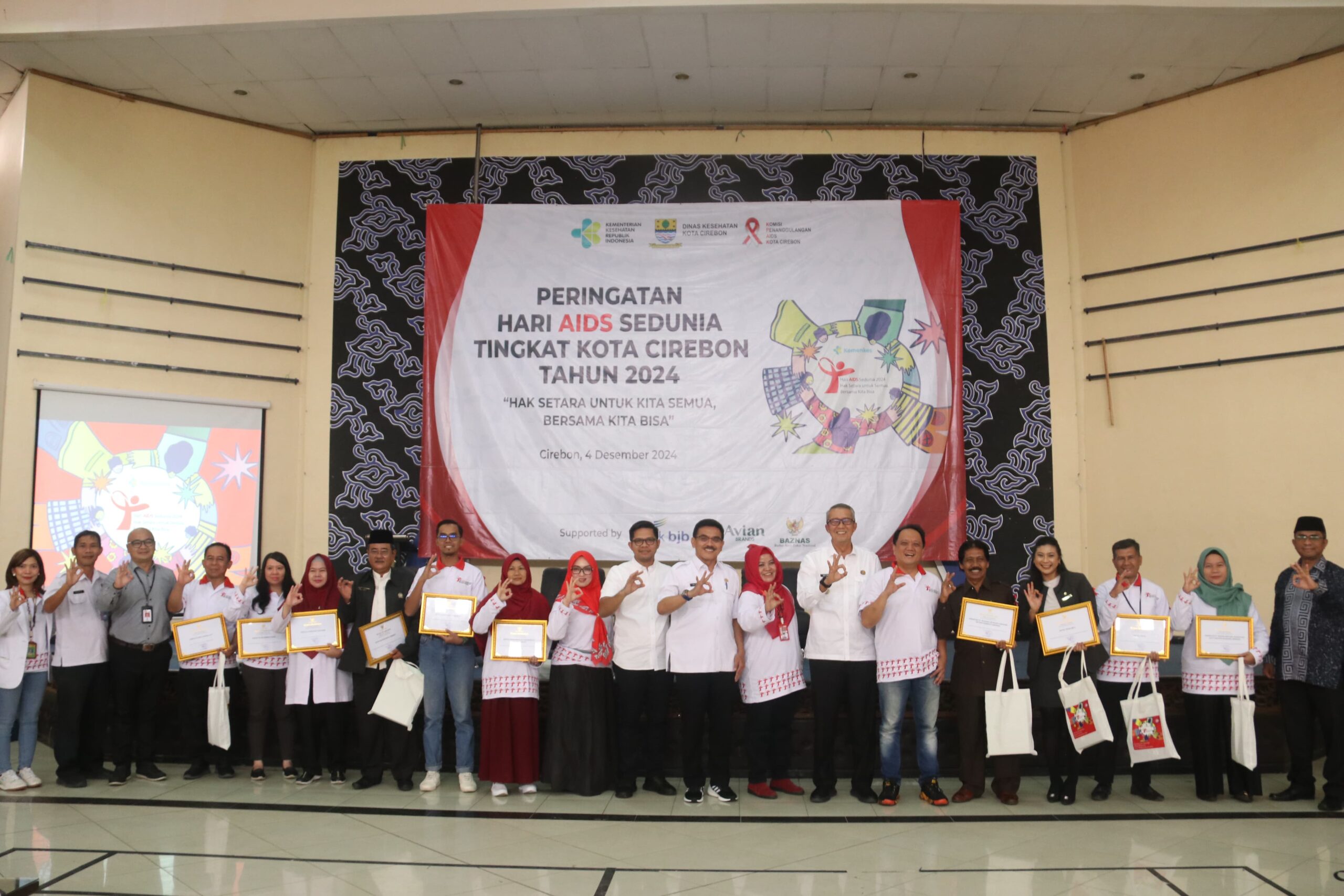 CIREBON- Peringatan Hari AIDS Sedunia bukan sekadar kegiatan seremonial, tetapi merupakan momentum penting untuk memperkuat komitmen bersama dalam memerangi penyebaran virus serta memberikan dukungan kepada mereka yang hidup dengan HIV/AIDS. Hal tersebut disampaikan oleh Pj Wali Kota Cirebon, Drs H Agus Mulyadi MSi hadir dalam peringatan Hari AIDS Sedunia tingkat Kota Cirebon di Gedung Islamic Center, Rabu (4/12/2024).