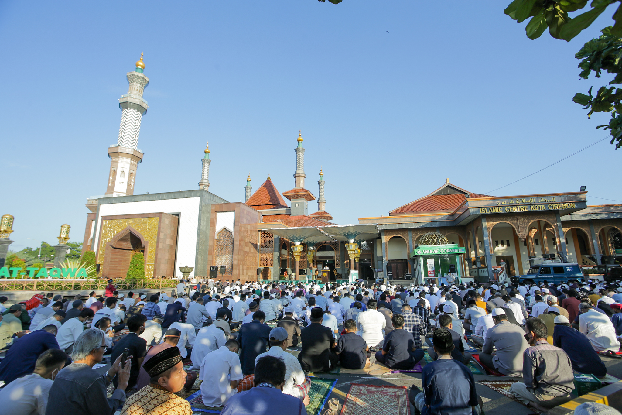 CIREBON - Ribuan umat muslim menunaikan salat Iduladha 1443 H dengan khusyuk di pelataran Masjid Raya At-Taqwa hingga kawasan Alun-alun Kejaksan Kota Cirebon, Minggu (10/7/2022).