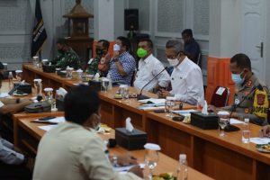 PSBB secara proporsional di Kota Cirebon berlaku mulai 27 Januari hingga 8 Februari 2021. “Tapi kami tetap memperhatikan faktor ekonomi,” ungkap Wali Kota Cirebon, Drs. H. Nashrudin Azis, SH., usai melakukan rapat pembahasan pemberlakuan PSBB secara proporsional di Ruang Adipura Kencana, Balaikota Cirebon, Rabu, 27 Januari 2021.