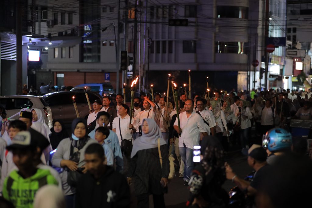 CIREBON - Pawai obor dalam rangka peringatan Hari Jadi ke-654 Cirebon pada Kamis (20/7/2023) malam berlangsung meriah. Pawai ini diikuti ratusan pelajar dari berbagai sekolah dan masyarakat Kota Cirebon.