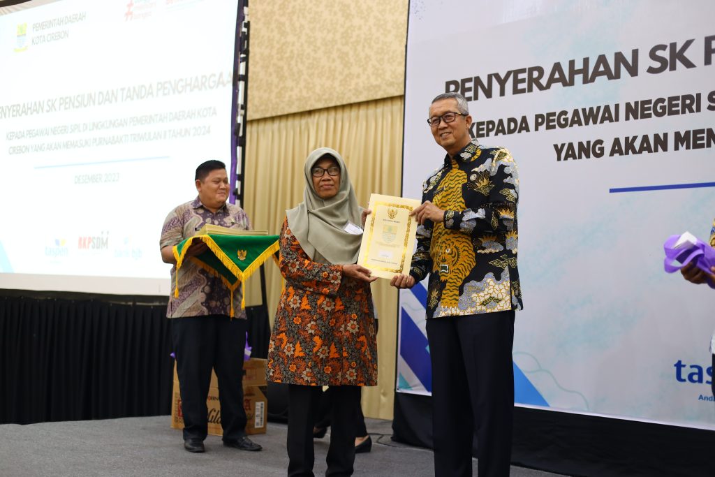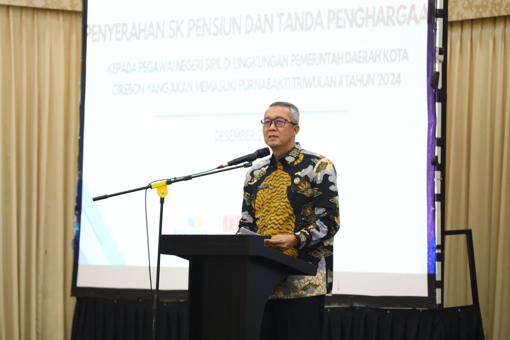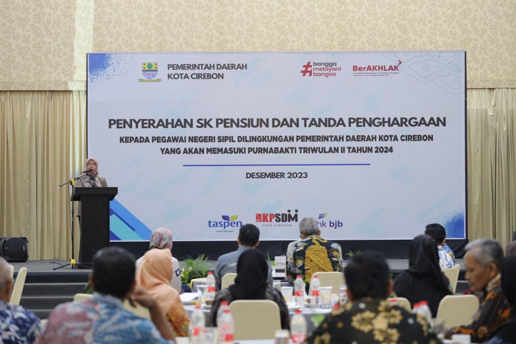 CIREBON – Pemerintah Daerah (Pemda) Kota Cirebon memberikan penghargaan kepada 59 aparatur sipil negara (ASN) yang memasuki masa purnabhakti pada triwulan II Tahun 2024, Jumat (15/12/2023), di Ballroom Grage Grand Business Hotel Cirebon.