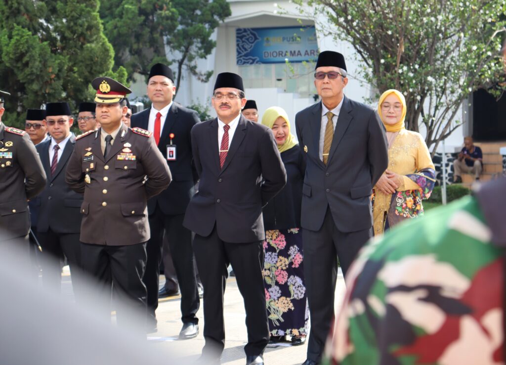 CIREBON – Pj Wali Kota Cirebon, Drs H Agus Mulyadi MSi bersama Pj Sekretaris Daerah, Dr H Iing Daiman SIP MSi, serta perangkat daerah dan forkopimda, mengikuti upacara peringatan Hari Kesaktian Pancasila di Halaman Apel Balaikota, Selasa (1/10/2024). Upacara juga dihadiri oleh para pelajar dan berbagai organisasi kemasyarakatan.