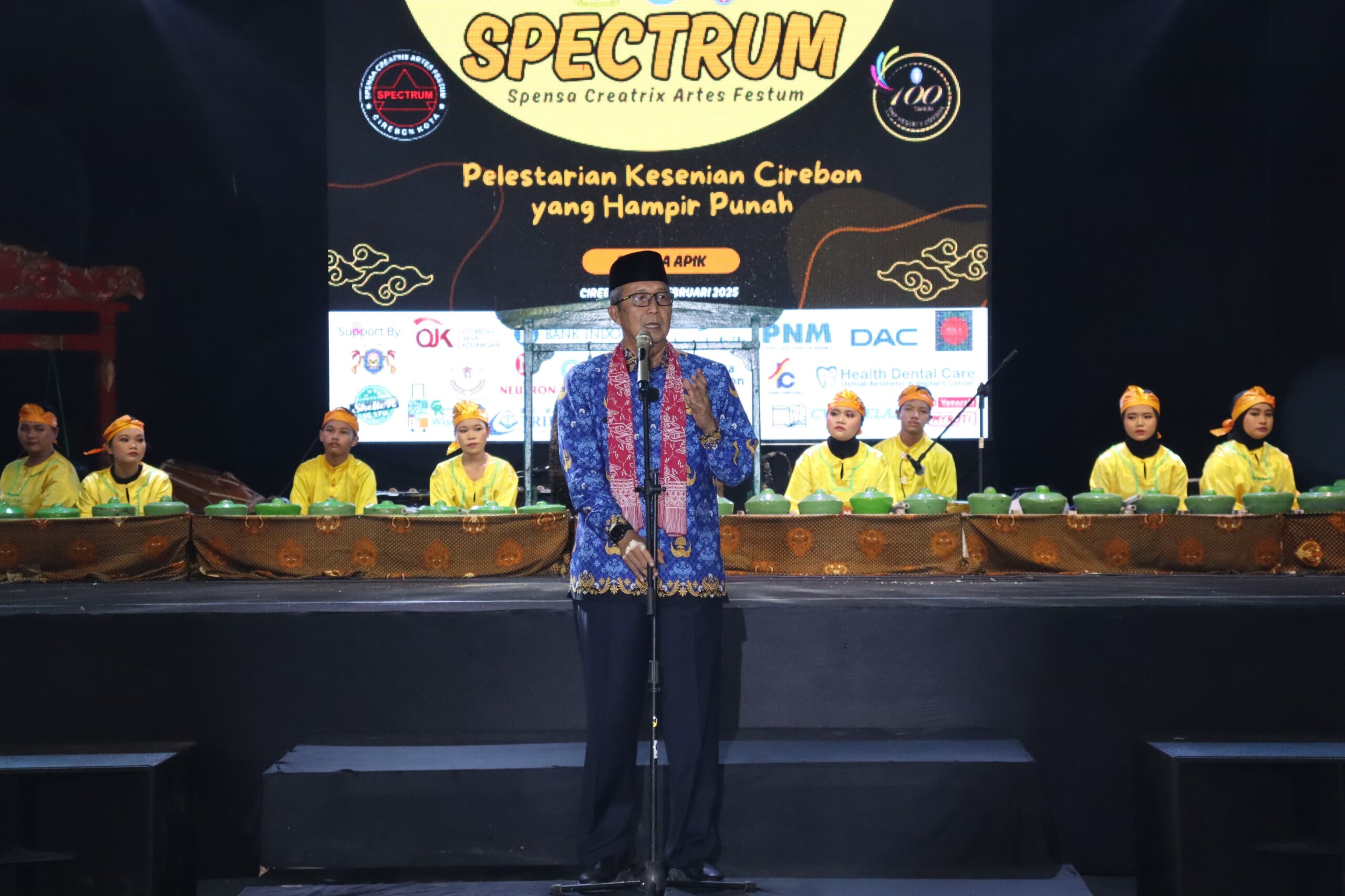 Cirebon - Pj Wali Kota Cirebon, Dr Drs H Agus Mulyadi MSi didampingi Kepala Dinas Pendidikan Kota Cirebon Kadini Ssos MAP menghadiri acara Spensa Creatrix Artes Festum (Spectrum) 2025 yang digelar di SMPN 1 Cirebon, Senin (17/2/2025). Festival yang mengusung tema "Pelestarian Kesenian Cirebon yang Hampir Punah" ini juga menjadi momen spesial dalam rangka menyambut peringatan 100 tahun berdirinya SMPN 1 Cirebon.